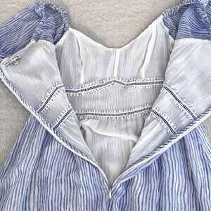 Moon River White & Blue Stripe Puff Sleeve Cottagecore Homemaker Midi Dress Sz M