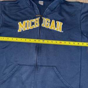 Nike Michigan Women’s Adult XL Blue Full Zip Front Hoodie. This comfortable blue hoodie is perfect for showing your support for Michigan. Featuring a full zip front closure and a cozy hood, it's ideal for layering or casual wear. The XL size ensures a comfortable fit for most adults. Excellent condition, ready to wear. One small spot shown in picture below check mark.