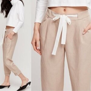Wilfred x Aritzia Allant Cropped Rolled Hem Linen Blend Pant in Taupe, Size 2
