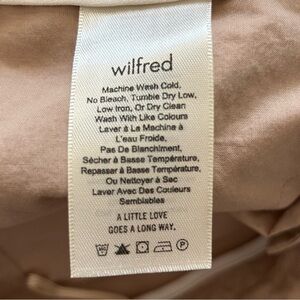 Details: Wilfred x Aritzia Allant Cropped Rolled Hem Linen Blend Pant has a silky tie at the waist, front slant pockets, one back pocket, and button fly. 63% Lyocell, 37% Linen. Machine washable.