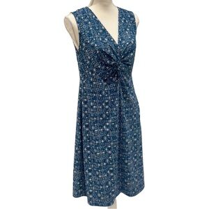 Eddie Bauer navy dress with floral pattern in size medium. Sleeveless design. Stretchy fabric. Pullover. V neck with front ruching for flattering fit! Perfect for versatile styling. Like new!