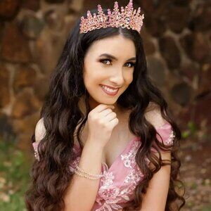 Features: Elegant tiara adorned with sparkling precision-cut crystals and shiny pink plating, creating a regal look. Lightweight and comfortable enough for all-day wear with included bobby pins to keep it securely in place. Perfect for weddings, proms, quinceañeras, or birthday celebrations — instantly makes any event feel more glamorous.