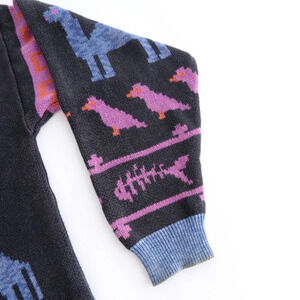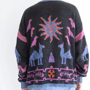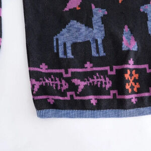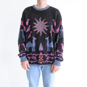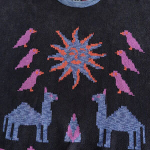 90S Loop Knitwear Black And Purple Aztec Camel Birds Crew Neck Sweater Medium