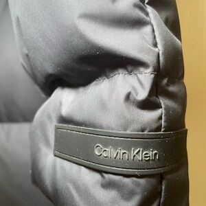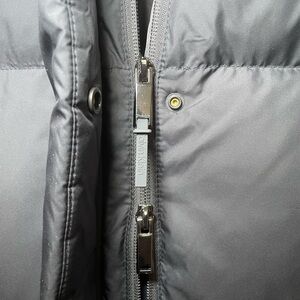 A protective essential against cold temperatures, this puffer coat has a down fill for extra warm layering. Made with a mock neck with an interior knit bomber collar. Designed with a front zip closure and slip pockets at the sides.