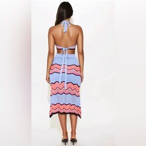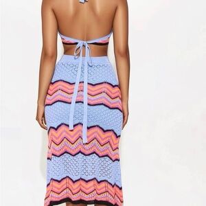 Retro Waves Crochet Halter Skirt Set - Blue/combo