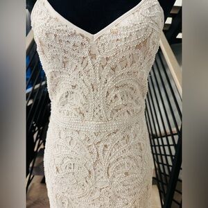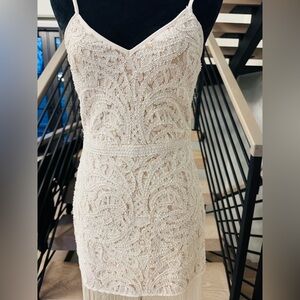 This elegant cream lace dress is perfect for any special occasion. Its intricate design adds a touch of sophistication and style.