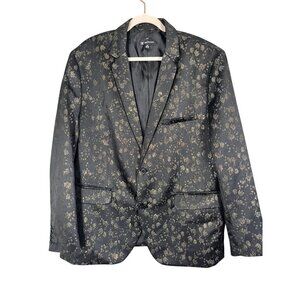 Retro Metallic Floral Blazer Black 2X NYE Festive Holiday Shiny Classic Chic 80s