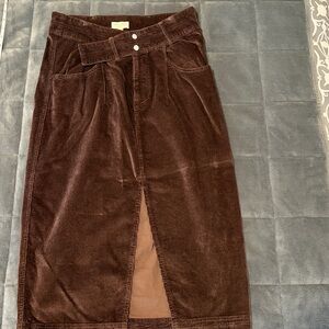 Pilcro Rich Brown Corduroy Skirt Front split.