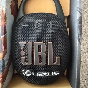 Compact JBL speaker with bold logo. Easy control buttons on top. Brand new, still in box, never used.