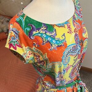 EUC bright and soft LAUREN RALPH LAUREN Multicolor Paisley Knit Belted Sheath Dress size Medium
