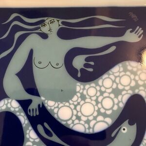 Vintage Bing & Grondahl Rare Art Deco Mermaid Runa Blue & White # 4737-363 7.5"x7.5" Fish Swimming Navy Blue Aqua