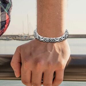Experience premium style design. Rock out and elevate your style with this stunning 6MM thick quality made Byzantine bracelet from Tribal Hollywood. This bracelet has a unique personality of its own with a custom luxury silver finish, and made to be forever lasting with unbreakable titanium stainless steel.