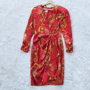 Richard Warren Vintage 80s Red Silk Faux Wrap Party Dress