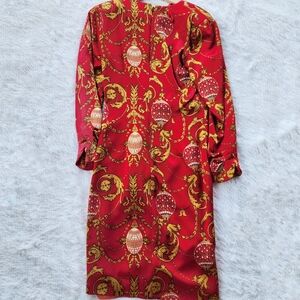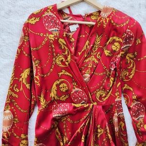 Richard Warren Vintage 80s Red Silk Faux Wrap Party Dress. Size 6 with no stretch. 100% silk. Long sleeve. V-neck. Should pads. Zip back closure. Great vintage condition. Brand tag is ripped out but if you look up RN number it does show Richard Warren.