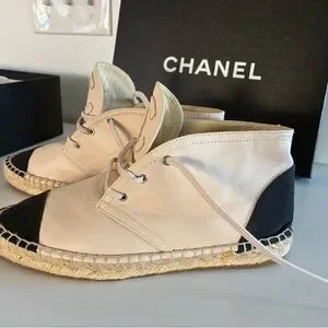 CHANEL Women's Cream and Black Ankle Boots Espadrilles Leather With Box Sz 38