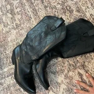 These chic black ankle booties from Free People feature a smooth leather finish and a classic silhouette. The pointed toe and sleek design make them a versatile addition to any wardrobe, perfect for both casual and formal occasions.