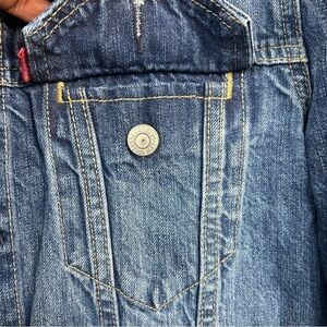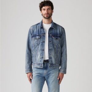 Iconic Levi's denim jacket. Features signature patch. Timeless style.