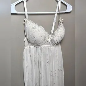 Black Fuschia Embellished Padded Lingerie Nightie, Size Medium