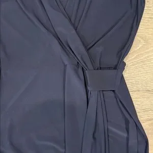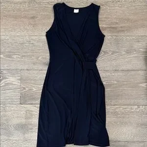 This elegant navy sleeveless dress is perfect for any occasion. Its sleek design offers a flattering fit, making it a versatile addition to your wardrobe.