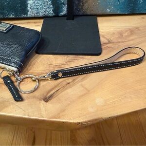 Dooney & Bourke Black Leather Wristlet in pebble black leather