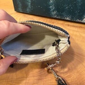 It features a zipper closure for security and a detachable strap, so you can carry it as a wristlet or tuck it inside a larger bag as a wallet/organizer. The interior is lined and thoughtfully designed with two main compartments and four credit card slots to keep your essentials organized.