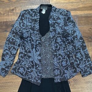 Alex Evenings Black and Silver Wide-Leg Jumpsuit
