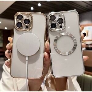 Protect your phone in style with this sleek clear protective case designed specifically for the iPhone 16 Pro Max. Featuring elegant gold metallic trim and a minimalist transparent back, this case showcases your phone while adding a refined, modern touch. Slim and lightweight, it offers everyday protection without bulk, making it perfect for daily use.