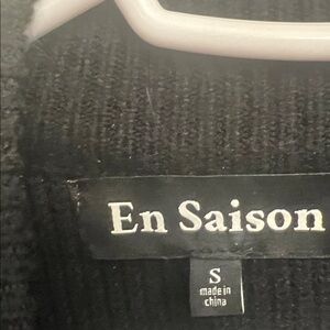 Chic black mini dress. Features white trim accents. Stylish and versatile.