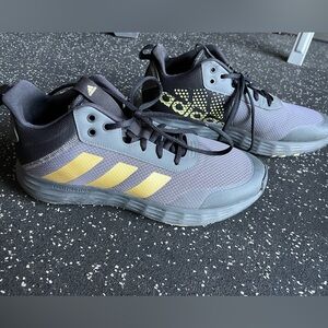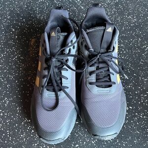 Stylish Adidas basketball sneakers in black and gold. Gently preowned condition. Men’s size 13
