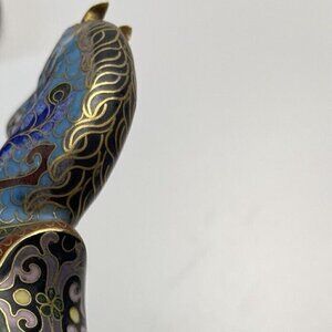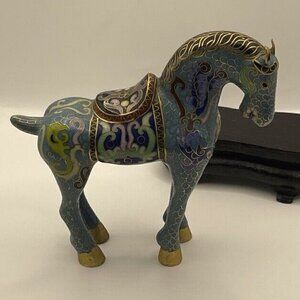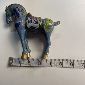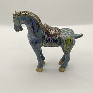 Vintage 20th Century Blue Enamel & Brass Cloisonné Horses Figurine 5" Home Art