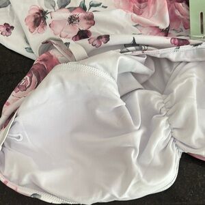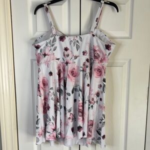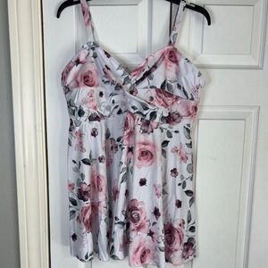 This sleeveless camisole features a chic ruched design and a stylish wrap detail, perfect for a trendy look. The light gray base is beautifully complemented by pink floral accents, adding a touch of elegance. Ideal for warm weather, the airy fabric ensures comfort throughout the day.