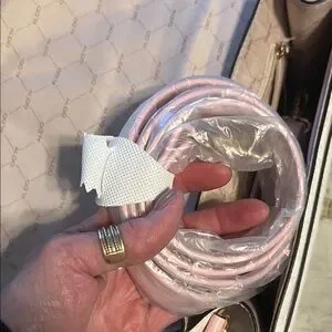 This stylish handbag features a chic pink and white design, complemented by a decorative scarf accent. Perfect for adding a touch of elegance to any outfit.