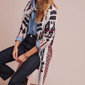 Anthropologie Moth Black and Red Aztec Patterned Sweater Coat