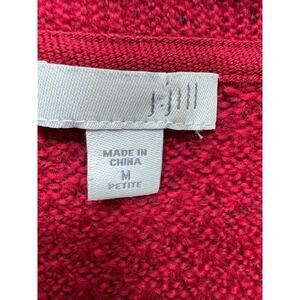 J Jill Women’s Cardigan Sz M Petite Open Front Red Pockets Knit Holiday Flaws