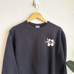 Trader Joe's Crew Neck Sweatshirt Small Logo Hibiscus Employee Black Pull-Over
