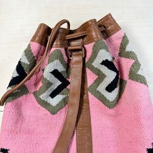 Ecote Southwestern Tapestry Leather Duffle Bucket Bag Drawstring Pink Brown