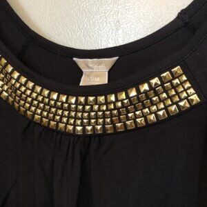 Michael Kors Black Scoop Neck Gold Studded Embellished Blouse size Medium