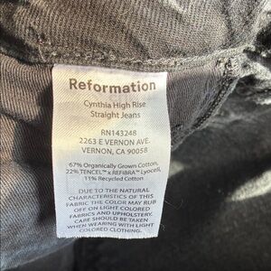EUC Women’s Reformation Black Cynthia High Rise Straight Jeans Size 24