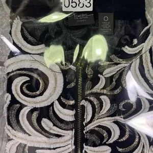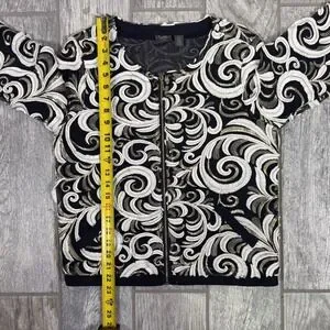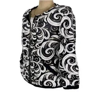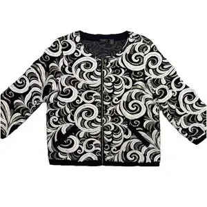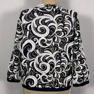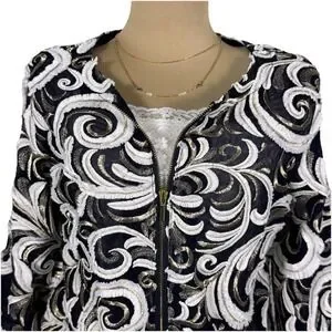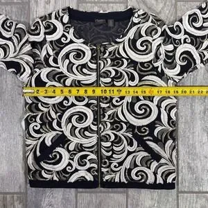 CHICO'S Travelers Scrolled Bomber Jacket Small Front Zip 3/4 Sleeve