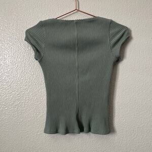 Intimately Free People Most Wanted Cardi rib knit button up top short cap sleeve sage green, Size XS. Good used condition, only worn twice. First 3 and last 2 photos a are stock photos to show fit and detail only.