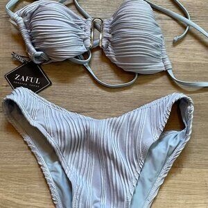 ZAFUL Women's Textured Underwire Bikini Set V Notch High Cut Swimwear S NWT