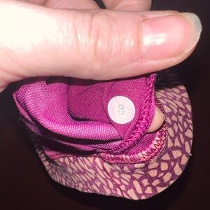 Stylish pink sports bra with unique pattern. Ideal for active wear.