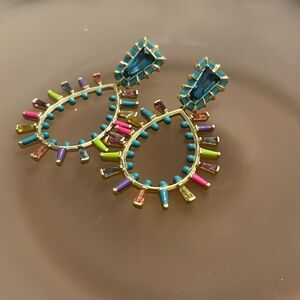 Feeling like your fit needs something a little extra? The Kelsey Gold Statement Earrings in Multi Mix have you covered. Teardrop shapes get some texture with a mix of enamel embellishments and custom-cut stones. And the open-frame design means these earrings are lightweight, so you can serve looks all day long.