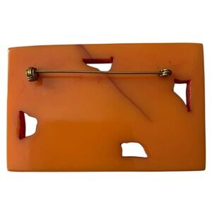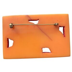 VINTAGE 30s/40s Art Deco Orange Bakelite Carved Brooch