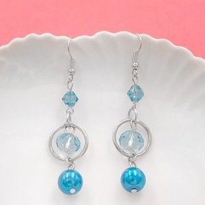 🍀 Aqua Blue Beaded Silver Dangle Earrings
