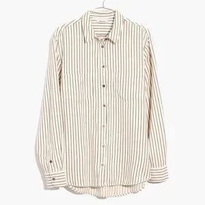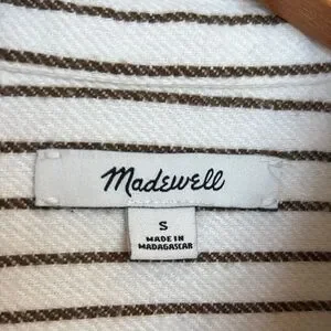 Madewell stylish striped blouse with button-down front. Features cream and brown colors. Ideal for casual or office wear. 100% Cotton