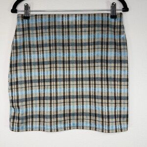Altar'd State Blue Gold Black Plaid Stretchy Elastic Waist Mini Skirt