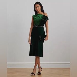 Lauren Ralph Lauren Green Women's Velvet A-Line Midi Skirt Size 8