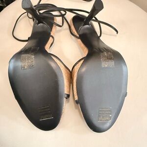 LPA Amara Raffia Black Ankle Wrap Heeled Sandals Size 8 New W/O Box