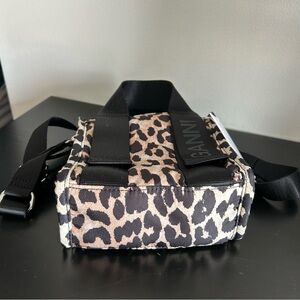 NWT Ganni leopard mini tech tote. Dimensions: 6.5x6.5 inches(15 x15 cm) message me if you need additional details or pictures or if you have any questions. The price is fixed.